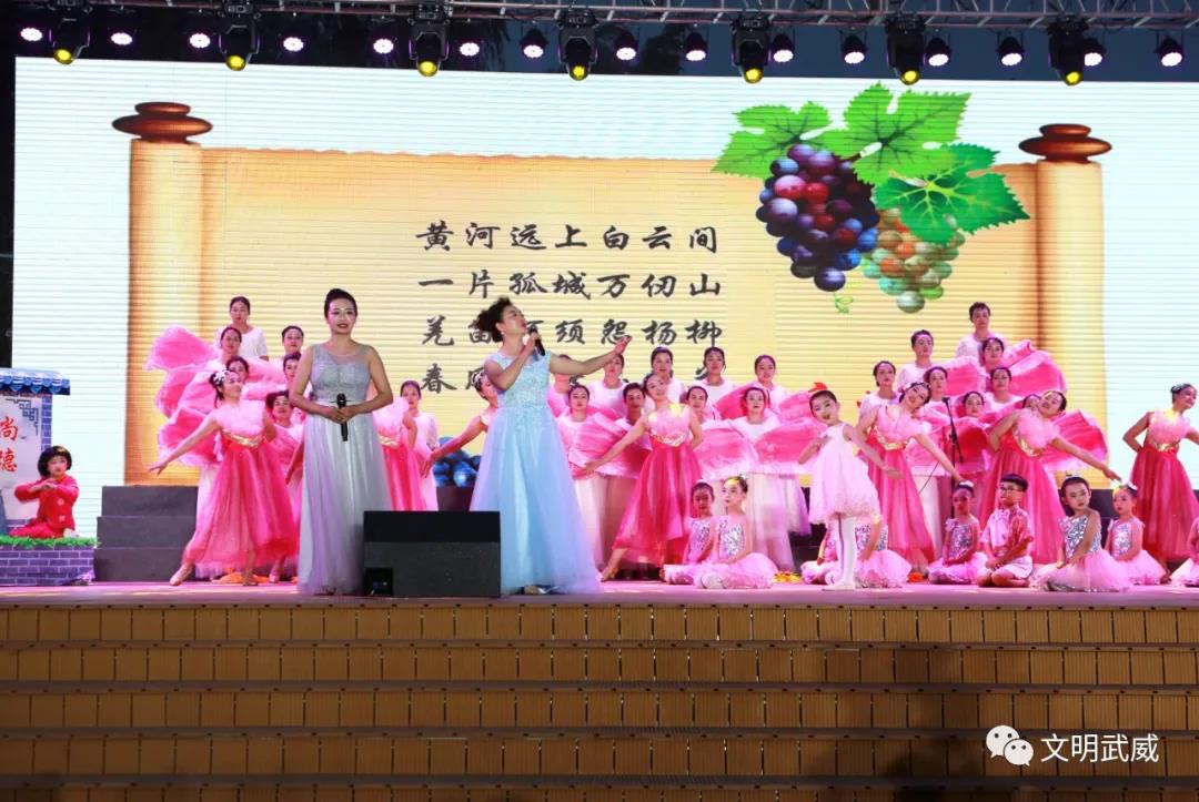 魔术《梦幻凉州夜》,灯火辉煌,如梦如幻,展现出新时代的凉州书城不夜,活力四射。音乐快板《携手共建新武威》、相声《文明时刻在心中》、歌舞《红马甲蓝马甲》将整场演出推向高潮,多方面展示了凉州区积极创建全国文明城市的成果,唱响了“文明凉州”的主旋律,描绘出了凉州区文明城市建设日新月异的新变化、新风貌,既丰富了广大市民的文化生活,又激发了大家参与创城、支持创城的积极性。
