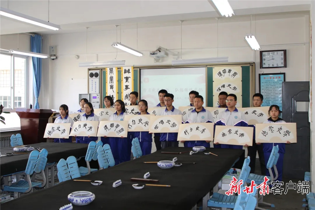 4月16日上午,记者在学校教学楼一楼看到,高二(5)班正在开展“缅怀革命先烈,传承红色基因”的主题班会,另一间教室里,书法特长的学生正用不同字体书写“学史明理、学史增信、学史崇德、学史力行”。操场上,正在排练大型舞蹈《春海》和大型合唱节目《从七月开始》。在校园一侧,矗立着一栋显眼的建筑。据介绍这栋建筑叫做“凤凰台”,如今已经改造成校史馆。走进校史馆,学生大使刘烨正为同学们讲身边榜样:甘肃最早的共产党员、武威乃至甘肃革命火种传播第一人、武威师范学校(十八中前身)国文历史教员——张一悟同志生平事迹的介绍、推广和传播。