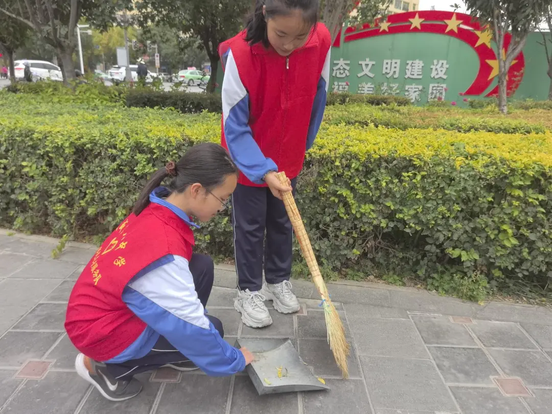 同学们手持清洁工具,分工协作,对西郊公园公共区域进行清扫。他们仔细清理枯枝败叶,认真擦拭道路护栏和公共设施,不放过任何卫生死角。经过数小时的辛勤劳动,清扫区域环境焕然一新。活动中,同学们还积极向市民宣传环保理念,倡导垃圾分类,展现了新时代少先队员的良好风貌。