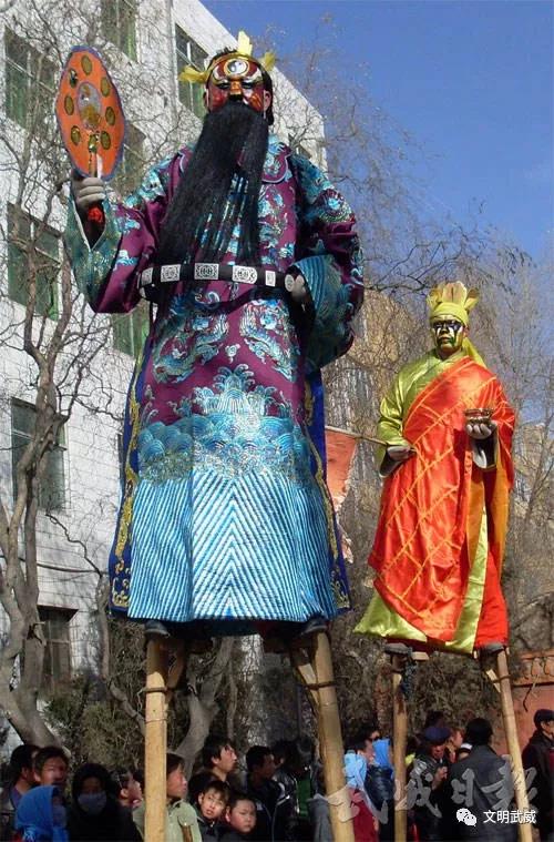 3月1日,正月十四,古浪县土门镇人山人海,热闹非凡。为喜庆元宵佳节,土门镇各村社火队齐聚,各展风采,为群众呈现了精彩的高跷、舞狮、旱船、秧歌等社火表演,吸引了广大群众前来观赏。社火表演在服装、道具的创意运用上着重突出了党的十九大精神的宣传,通俗易懂,使群众一目了然、熟记于心。参演人员精神饱满,脸上挂着灿烂的笑容,脚底踩着欢快的鼓点,尽情地舞动着手帕和彩扇,用力地挥打着锣鼓,不时与群众们互动,营造出浓厚的节日气氛,充分展示了人民群众蓬勃向上的良好精神风貌。土门社火,形式独特、阵容庞大、装扮古朴典雅,深受广大群众喜爱。 社火表演喜气洋洋 土门高跷独具特色