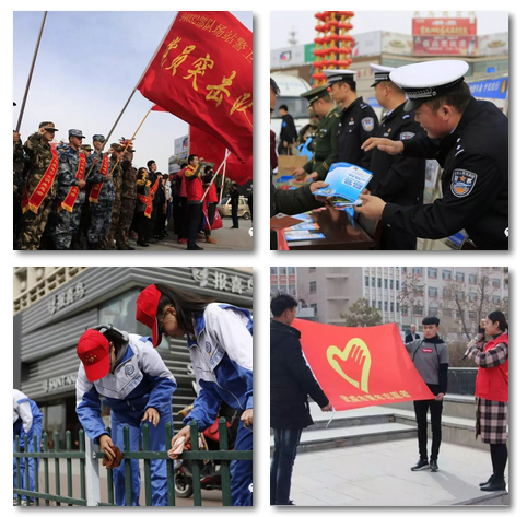2018年是毛泽东等老一辈革命家为雷锋同志题词55周年,为了进一步学习和弘扬雷锋精神,倡导时代新风正气,引导广大群众培育和践行社会主义核心价值观,为创建全国文明城市凝聚智慧和力量,营造浓厚工作氛围,3月5日下午,武威军分区政工处、团市委、市文明办、市教育局、市残联及市区相关单位在文化广场举办了以“传承雷锋精神 创建文明城市”为主题的市区青年志愿者服务月活动启动仪式。