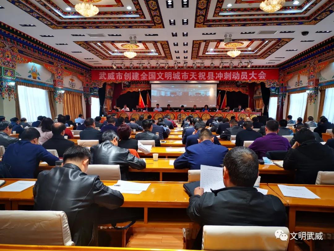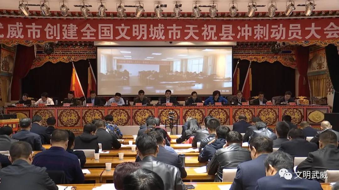3月30日,武威市创建全国文明城市天祝县2020年冲刺动员大会召开。天祝县委书记、县创城工作领导小组组长李鹏出席会议并讲话。会议传达学习了武威市创建全国文明城市2020年冲刺动员大会精神,对2020年度创城工作任务进行了安排部署。