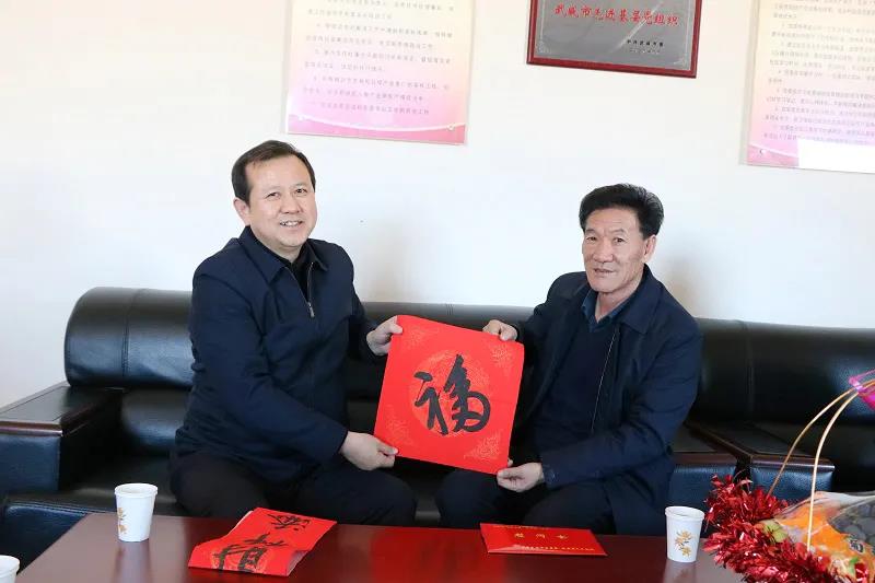 随后,柳鹏来到全国劳动模范、八步沙林场场长郭万刚家和八步沙林场,看望慰问了张润元、郭万刚等“时代楷模”八步沙林场“六老汉”治沙造林先进群体代表。“春节临近,我们代表市委、市政府专程来看望你们,给你们拜年。”柳鹏说,过去这些年,你们在岗位上辛勤工作、默默奉献、开拓创新、攻坚克难,“三代人”扎根荒漠、矢志不渝、接续奋斗,用实际行动践行习近平生态文明思想,在平凡的岗位上创造了不平凡的业绩,为全市生态文明建设作出了卓越贡献。你们是全市干部群众学习的楷模,是武威人民的骄傲,我们永远不会忘记你们,永远感谢你们。希望你们继续发挥先进典型的示范引领作用,把“六老汉”精神传承好,在全市乡村振兴、生态文明建设中再接再厉、再立新功。祝福你们及家人在新的一年里,身体安康,全家幸福。