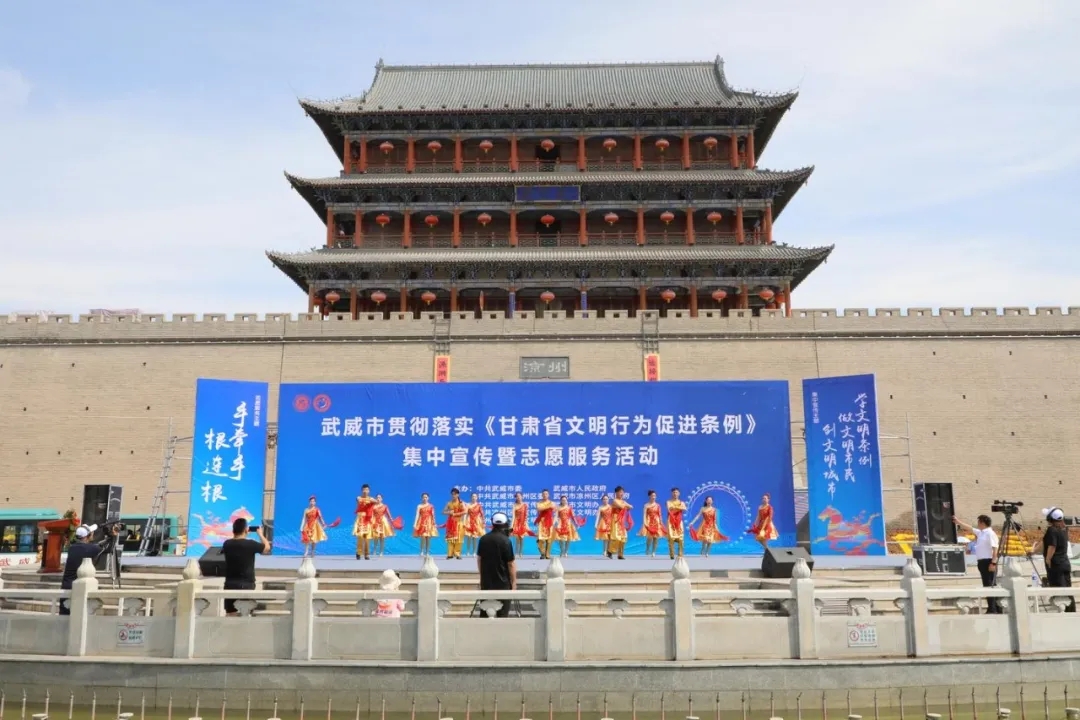 8月5日,凉州区以学习宣传《甘肃省文明行为促进条例》为契机,扎实开展“学文明条例 做文明市民 创文明城市”集中宣传活动,切实推进了社会主义核心价值观融入法治建设,体现到市民公约、村规民约、行业规范中。今年以来,一场场丰富多彩的新时代节日文化活动,一座座有着闪光印记的精神标杆,一段段彰显新时代文明新风的公益广告......无论大街小巷,无论年幼老少,凉州区正用行动实践,使社会主义核心价值观融入城市血脉,走进百姓心田。