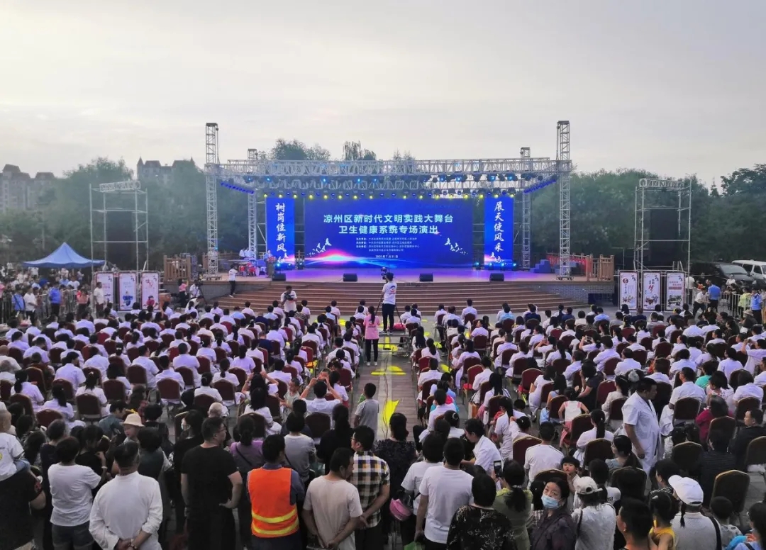 凉州区新时代文明实践大舞台和大广场,组织开展以“文明实践与您同行”、“公民道德宣传日”、“大美不言”等为主题的专场演出11场,着力打造新时代文明实践中心“365N”凉州模式,不断使党的创新理论家喻户晓、社会主义核心价值观深入人心、文明新风蔚然成风。
