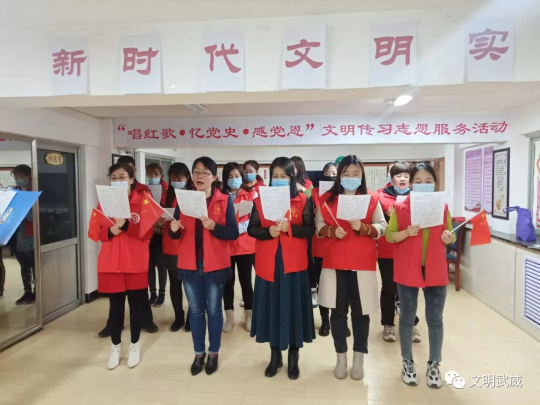 为贯彻落实习近平总书记在党史学习教育动员大会上的讲话精神,关于党史、新中国史、改革开放史、社会主义发展史学习和指导精神,持续深化爱国主义教育。近日,在惠民社区的带领下、市畜牧兽医科学研究院9名志愿者及市中级人民法院、中国人寿武威分公司、区法院等单位志愿者,共同开展“唱红歌·忆党史·感党恩”新时代文明传习志愿服务活动,用声音为党“献礼”,致敬“百年征程”。