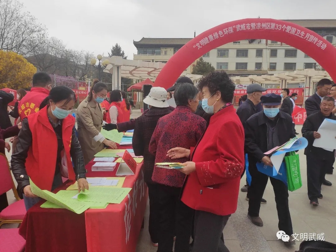 4月9日下午,武威市开展以“文明健康、绿色环保”为主题的第33个爱国卫生月宣传活动。