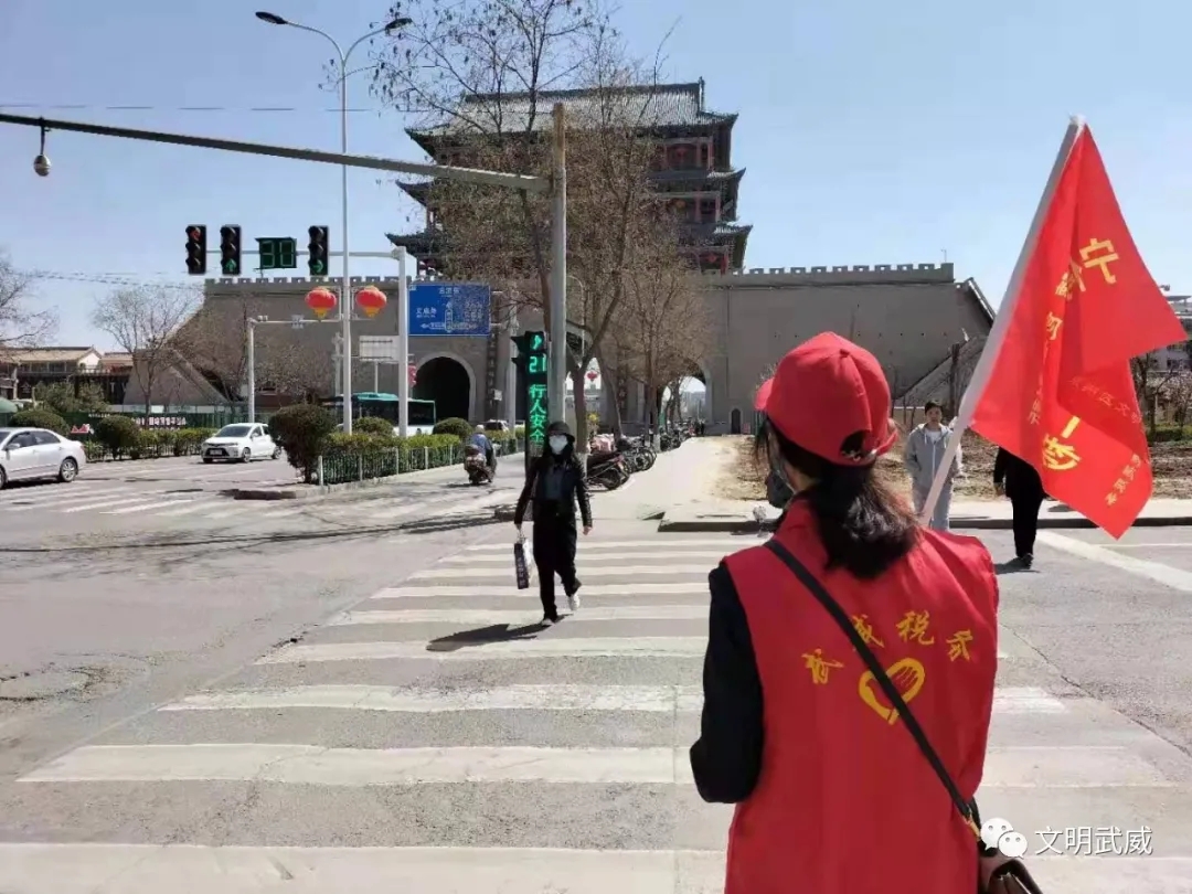 武威银保监分局志愿者开展文明交通劝导活动。