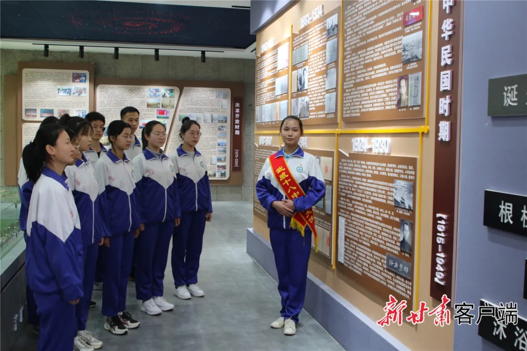 4月16日上午,记者在学校教学楼一楼看到,高二(5)班正在开展“缅怀革命先烈,传承红色基因”的主题班会,另一间教室里,书法特长的学生正用不同字体书写“学史明理、学史增信、学史崇德、学史力行”。操场上,正在排练大型舞蹈《春海》和大型合唱节目《从七月开始》。在校园一侧,矗立着一栋显眼的建筑。据介绍这栋建筑叫做“凤凰台”,如今已经改造成校史馆。走进校史馆,学生大使刘烨正为同学们讲身边榜样:甘肃最早的共产党员、武威乃至甘肃革命火种传播第一人、武威师范学校(十八中前身)国文历史教员——张一悟同志生平事迹的介绍、推广和传播。