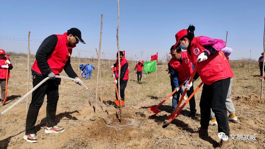 人勤春来早,种绿正当时。近日,由武威市总工会牵头组织各级劳模代表,甘电投武威热电有限责任公司、青岛啤酒武威有限责任公司、武威市城区集中供热公司干部职工,以及市总工会、古浪县总工会机关及下属单位干部职工,共计160余人在古浪县八步沙林场为“劳模林”揭碑并开展义务植树活动。