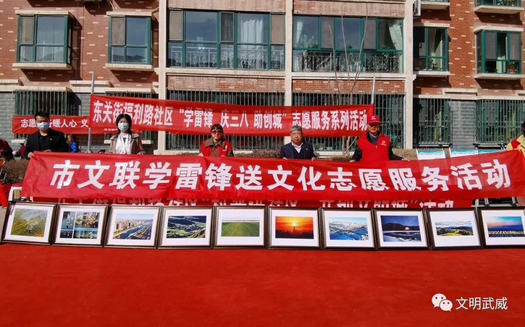 市文联党支部在东关街福利路社区组织开展“学雷锋”送文化志愿服务活动,向社区居民赠送《西凉文学》等书籍100多本,摄影作品10幅。
