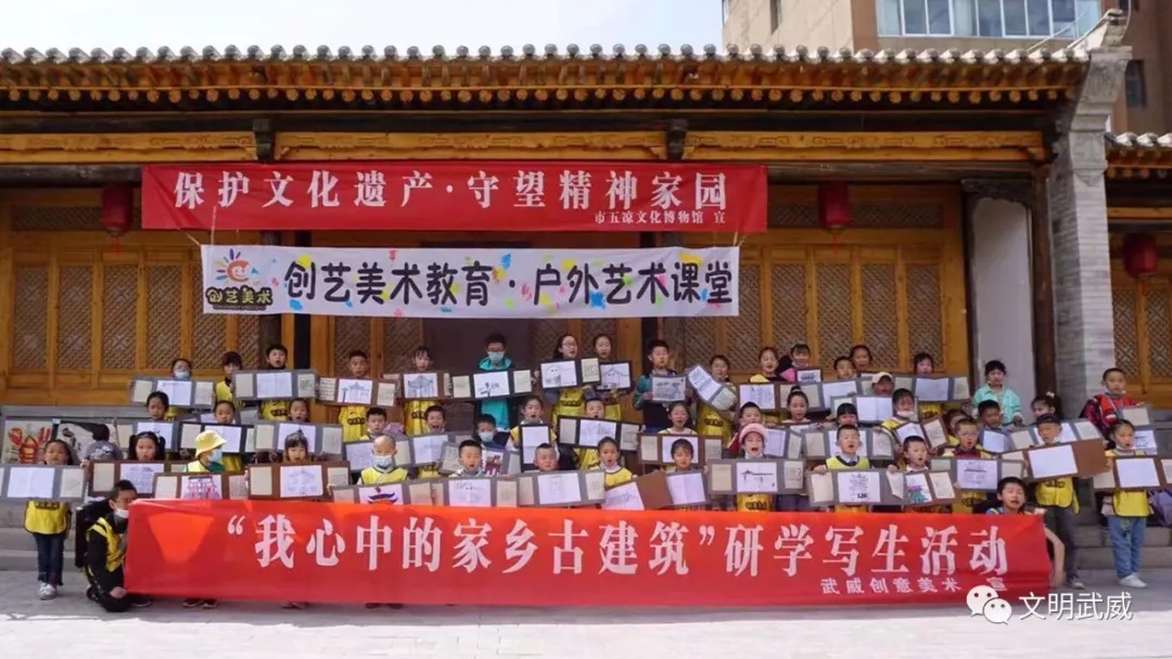 100多名青少年身背画板、怀揣梦想,在创艺美术研学中心老师的精心指导下,用手中七彩的画笔记录下武威的古典之美,也把对家乡的无限期许放飞……