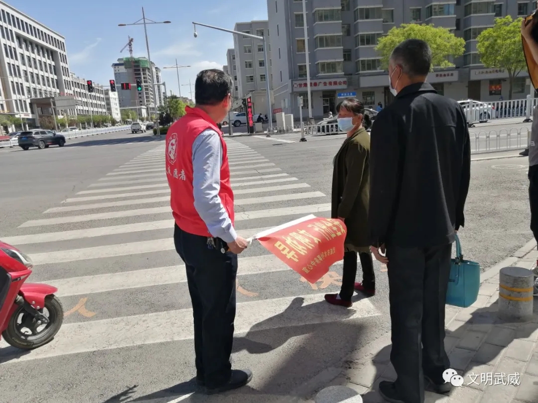 5月7日,武威街头、社区一抹抹“志愿红”引人注目。各部门单位组织志愿者常态化开展志愿服务活动,让“奉献、友爱、互助、进步”的志愿精神深入人心,引领广大居民参与到文明城市创建工作中来,争做文明城市创建的践行者。