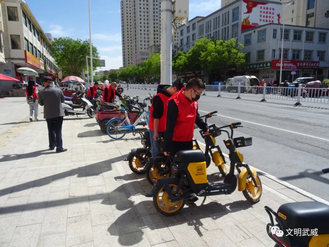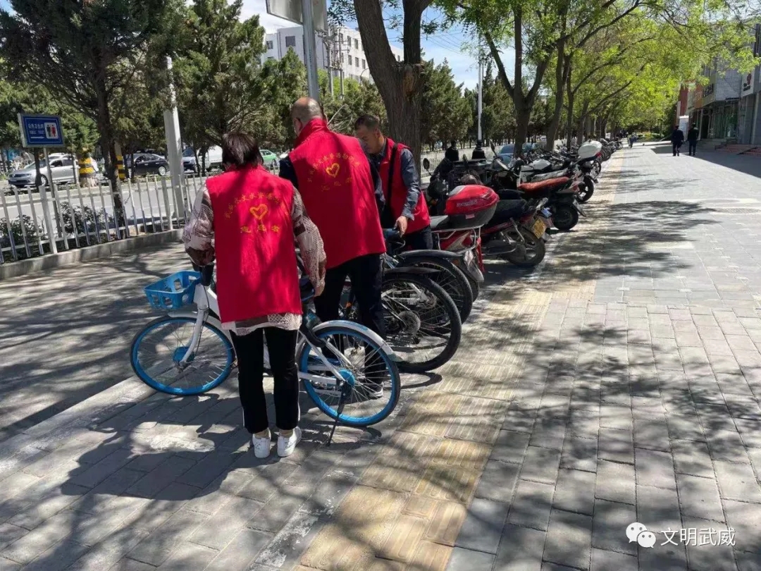 武威水文水资源勘测局志愿者开展非机动车摆放等志愿服务活动。