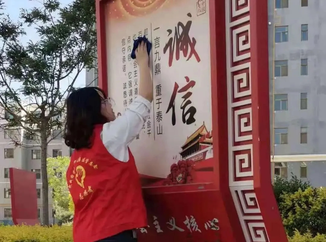 志愿者拿着盆子、抹布,提着水来到包抓共建环境区域,清理公共设施上的小广告、公交候车亭灰尘、墙体污渍等;对共享单车进行擦洗摆放;引导市民树立“人人讲文明、文明从我做起”的良好氛围,助力清新洁净城市建设。