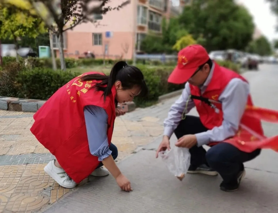 5月28日,市司法局志愿服务者在雷台社区碧水兰庭小区开展捡烟头志愿服务。
