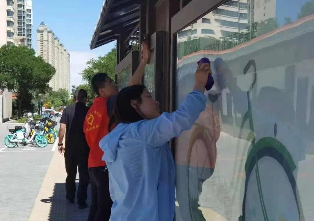 志愿者拿着水桶、抹布等工具,对主次干道公交站台、道路指示牌等“城市家具”刷洗、擦拭,与此同时,志愿者们还对主次干道、广场的绿化带、花坛内的垃圾进行全面清理,优化城市市容市貌,创造一个干净卫生、整洁优美的市容环境。