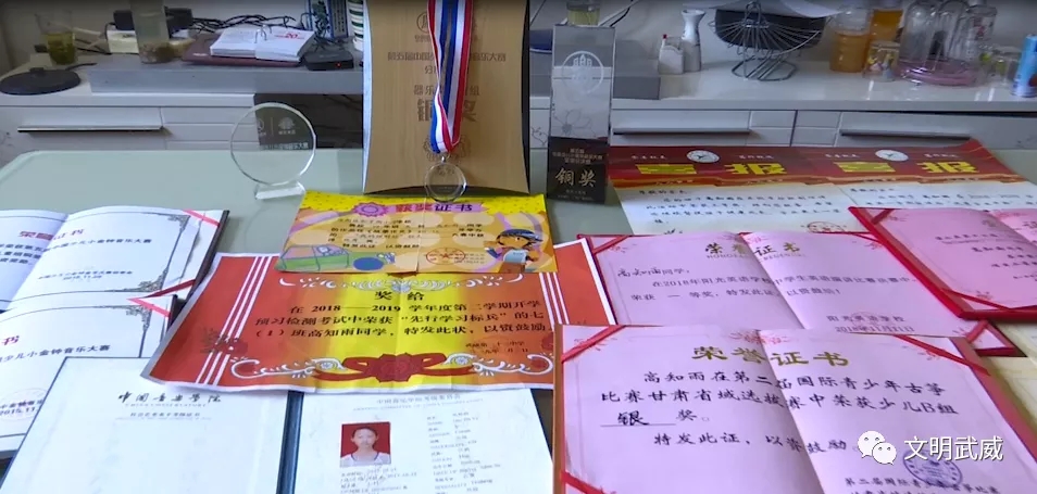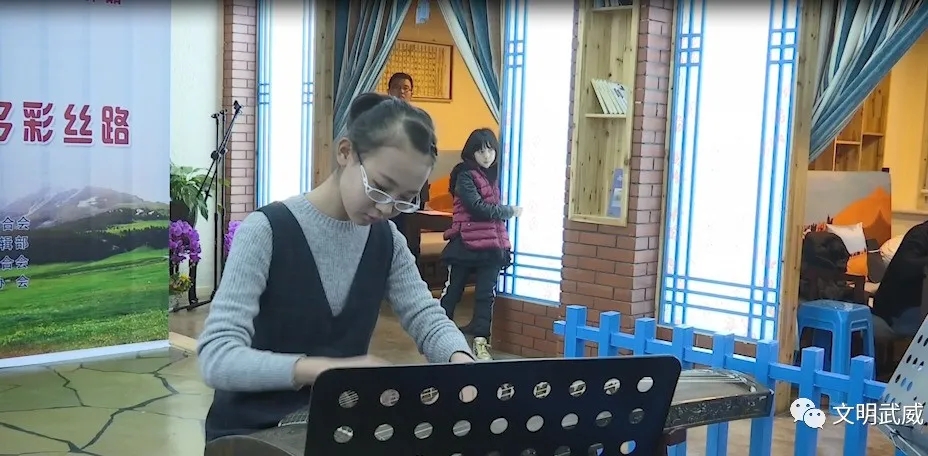 在音乐方面,她也有着比较浓厚的兴趣。自小学习古筝、钢琴器乐,目前已达到古筝十级、钢琴九级的弹奏级别。不论是学习读书还是学习器乐,她认为坚持不懈持之以恒非常重要。一份耕耘,一份收获。经过反复不断的勤学苦练,在器乐方面,她也取得较好的成绩:2015年,她曾获全国第五届中国少儿小金钟音乐大赛器乐组三等奖;在《飞天》杂志举办的“大美甘肃 多彩丝路”诗歌散文大奖赛武威朗诵会上,她曾为全省评委独奏古筝曲目《井岗山上太阳红》;在二十三中学校举办的艺术节上,为全校师生演奏古筝《山丹丹开花红艳艳》;在学校新年音乐会上,为全体师生演奏钢琴曲目《夕阳萧鼓》……台上一分钟,台下十年功,她的精彩表演,不仅为大家带来艺术的愉悦,同时也获得了大家的一致好评。