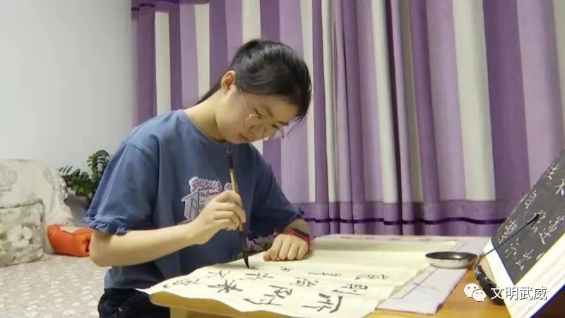 在学校,曾秋伊热心公益,助人为乐,以服务老师和同学为宗旨,甘做老师和同学之间的桥梁,协助老师做好日常的大小事务,工作中用心主动,职责心强。除了掌握丰富的文化知识以外,她喜欢唱歌、写字、跳舞。不但积极参加学校组织的各项文体活动,还利用课余时间练习写字。在全县2019年中小学生阅读推广比赛活动中,曾秋伊的手抄报《歌颂祖国》获初中组一等奖;在2019年民勤县第二届师生优秀书画、摄影作品展中,她的硬笔书法作品获优秀奖。