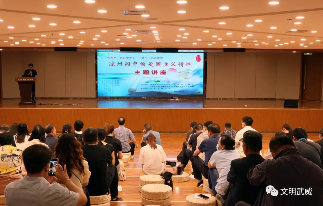 凉州文化研究院助理研究员李元辉老师紧紧围绕“凉州词中的爱国情怀”这一主题,深入浅出地分析了凉州词所蕴含的爱国主义精神,深刻阐释了爱国主义在不同阶段的精神实质和现实意义。讲座旁征博引、论述精辟,具有很强知识性和趣味性,不时博得现场观众阵阵喝彩。在全国上下喜迎中国共产党百年华诞,扎实推进党史学习教育的重要时间节点,举办此次活动对于激发全市广大干部进一步增强文化认同,厚植爱国情怀,凝聚起同心共筑中国梦的强大精神力量具有重要的推动作用。