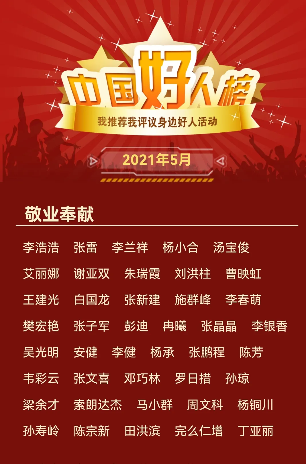 近日,中央文明办在江西省吉安市举办“中国好人榜”发布活动,发布2021年5月“中国好人榜”,105名身边好人光荣上榜。
