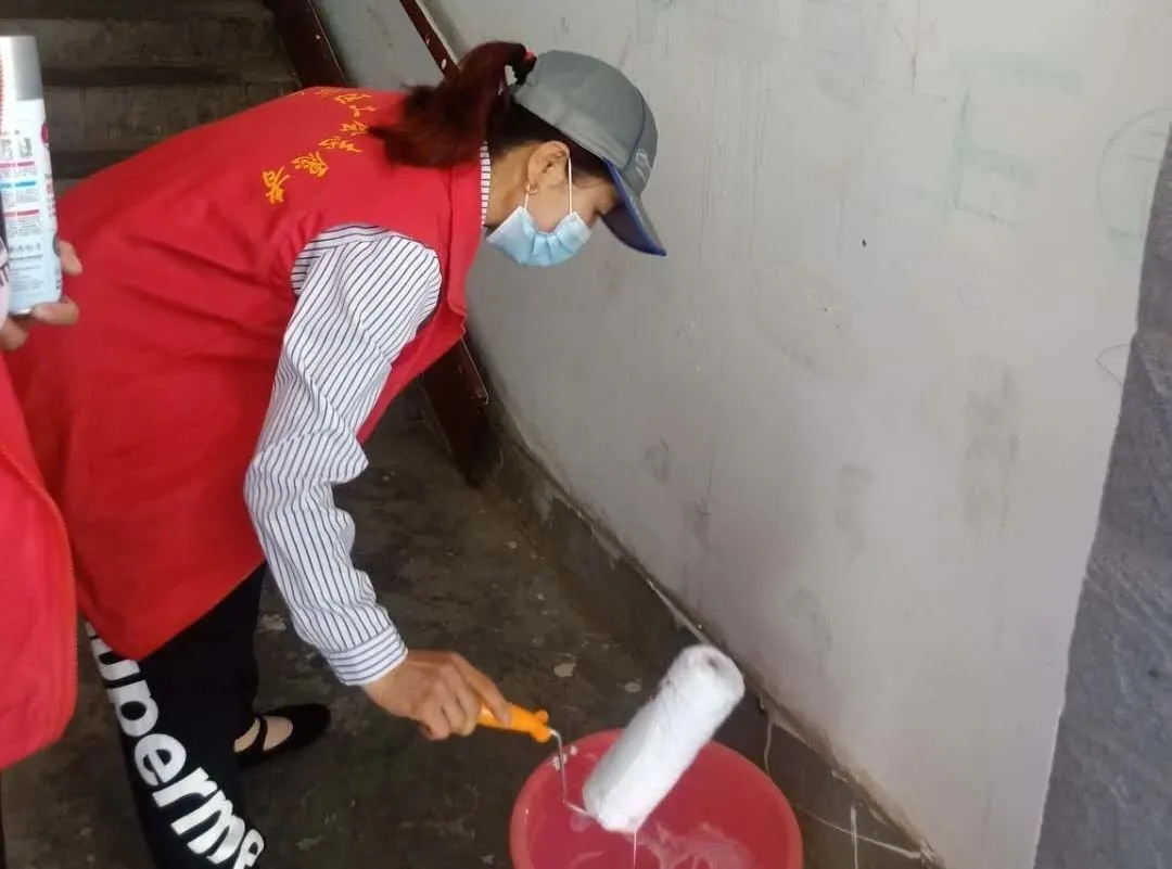 市畜科院、惠民社区志愿者们在包抓小区楼道内开展粉刷小广告服务活动。