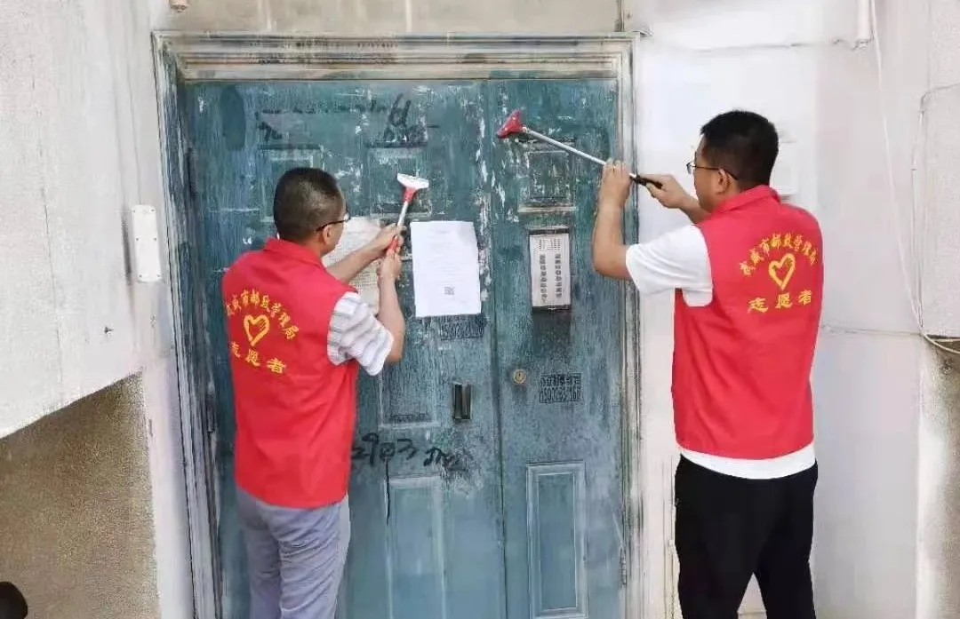 市档案馆志愿者在古楼社区酒厂一号楼开展清理“牛皮癣”小广告志愿服务活动。