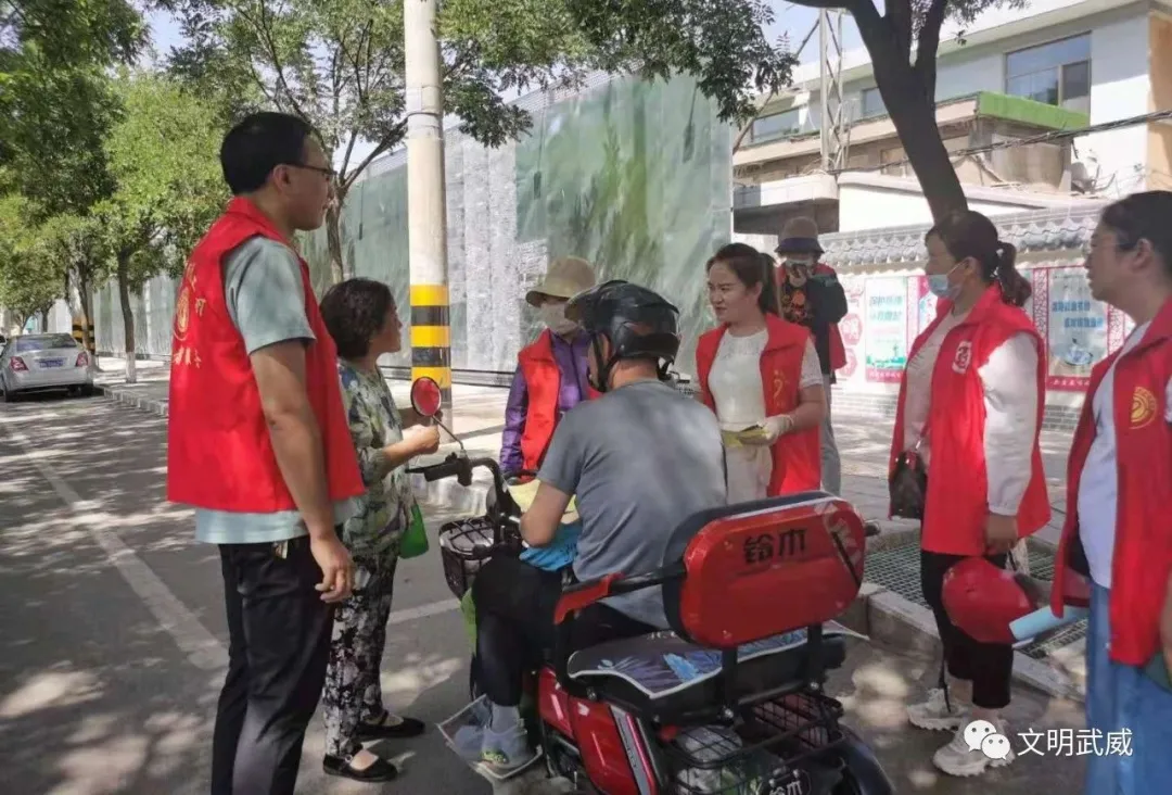 连日来,志愿者们穿梭在武威市城区的大街小巷,头顶似火骄阳,坚守在户外。他们或在交叉路口温馨提示着行人要遵守交规、文明出行;或在卫生盲区帮助清理垃圾;或在社区向市民宣传爱护城区整洁的环境,纠正个别人乱停放车辆等不文明行为……他们践行“奉献、友爱、互助、进步”的志愿服务精神,进基层、进社区、进家庭,解决文明城市创建过程中基层工作人员不足、工作力量不够等问题,助力提升我市全国文明城市创建水平。