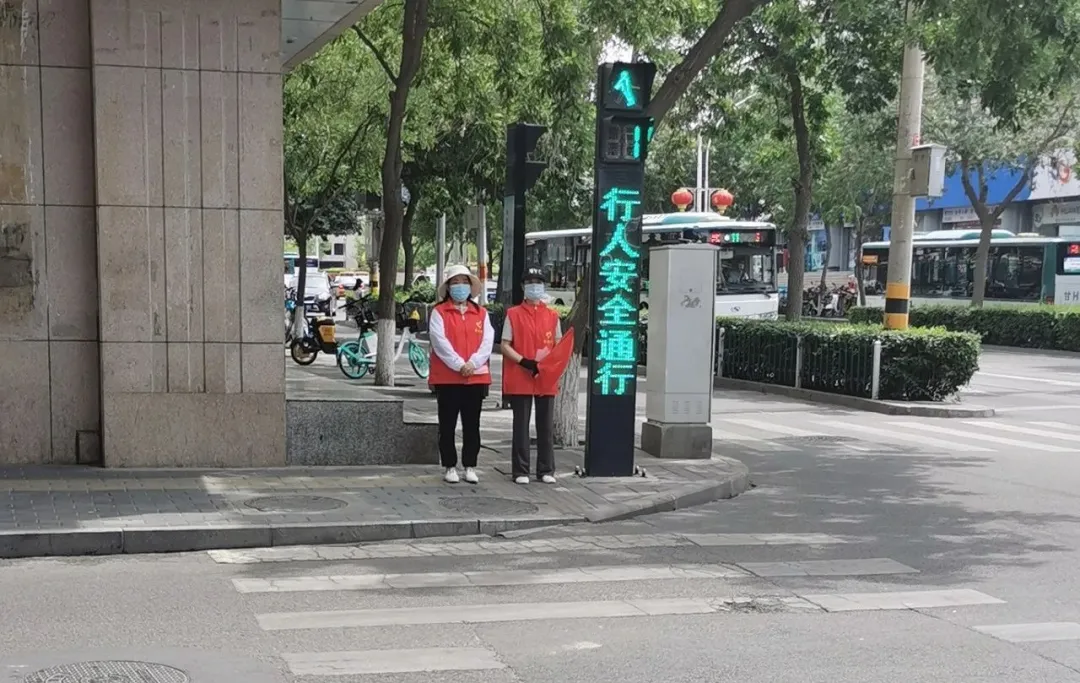 市民政局志愿者在杨府社区开展疫情防控和交通劝导志愿服务活动。