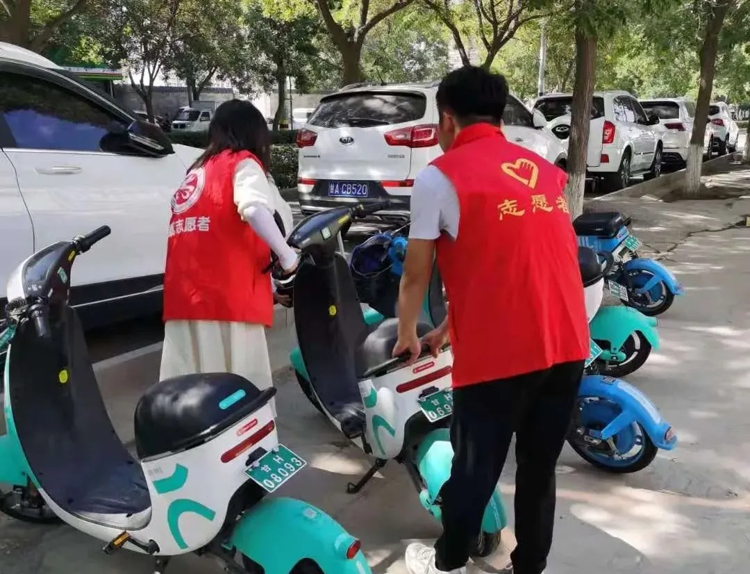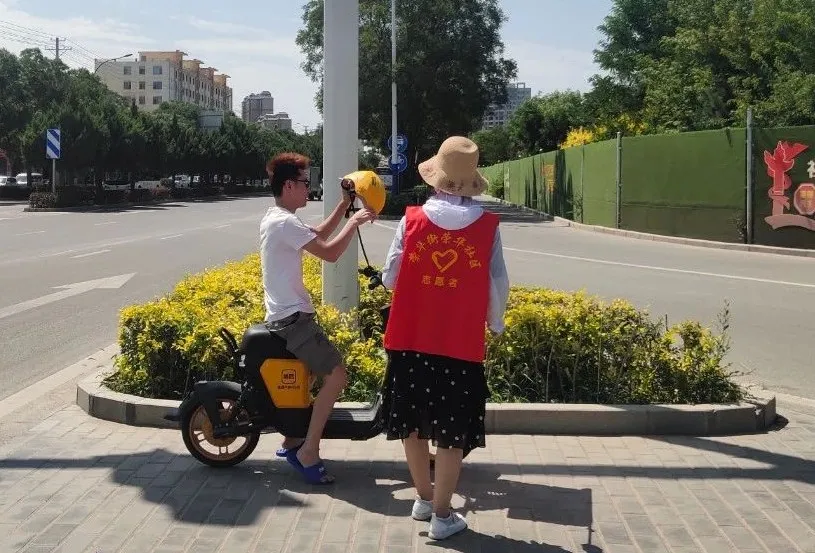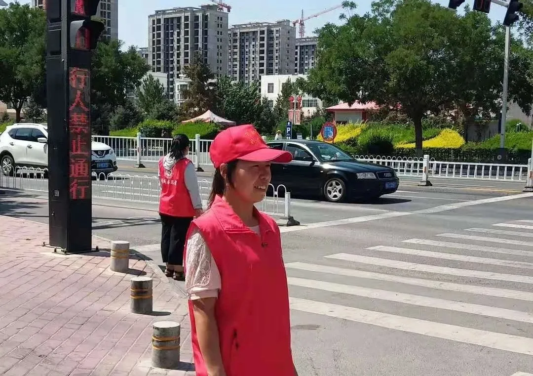 市生态集团志愿者在和平镇枣园社区开展文明交通劝导志愿服务活动。