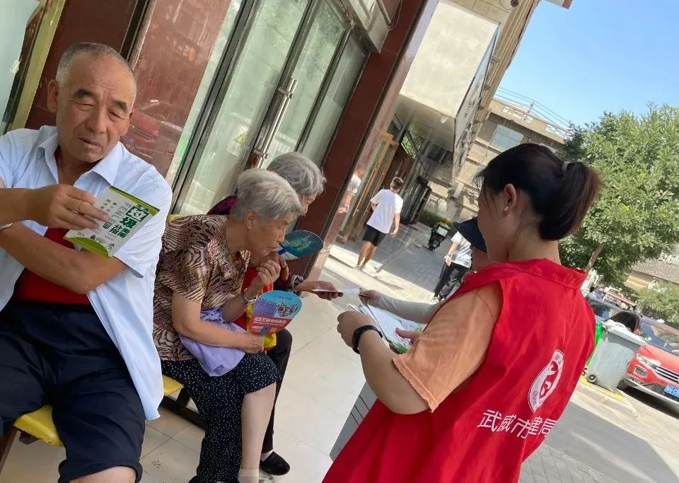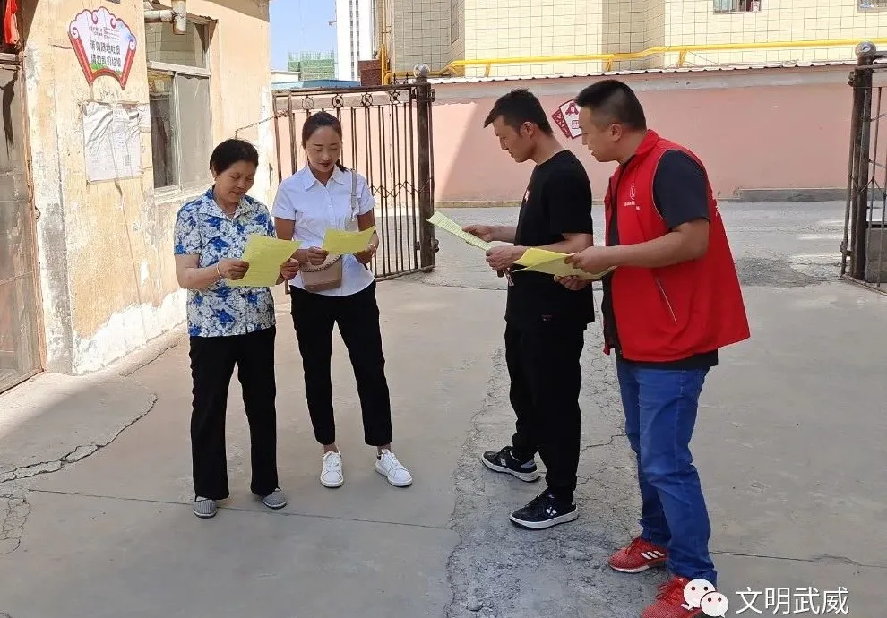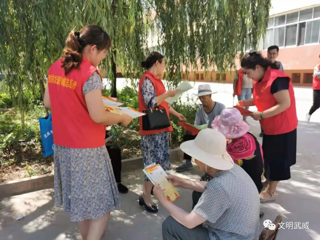 武威无线电管理处志愿者在丹阳社区开展“抵制邪教渗透 筑牢防邪防线”宣传志愿服务活动。