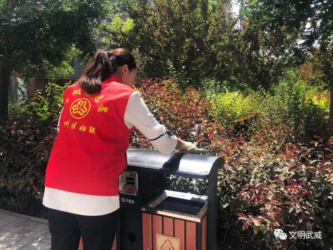 凉州区妇联志愿者开展环境卫生清扫志愿服务活动。