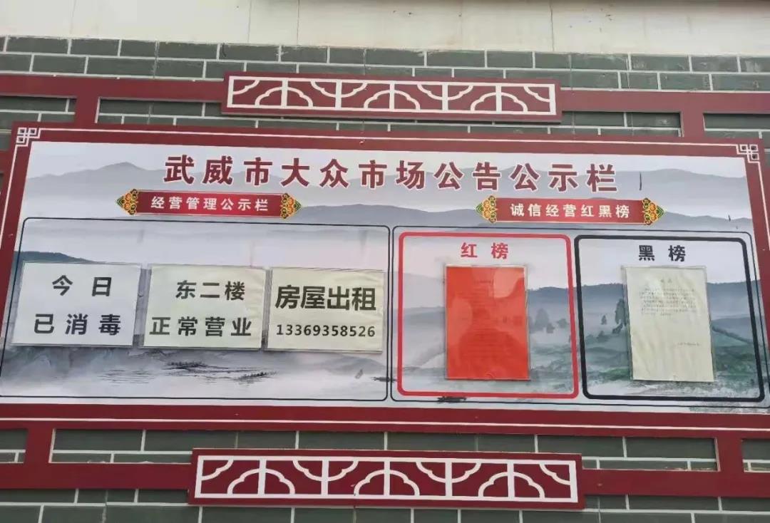 便民市场与百姓生活息息相关,更是城市文明的缩影,直接反映一个城市的文明程度。在文明城市创建中,便民市场治理是老大难问题,个别市场存在环境脏乱差、流动摊点多、车辆停放乱等问题。为进一步规范便民市场管理,凉州区市场监管部门在各个便民市场设置“公示牌”,不仅公示市场监管执法人员、消费维权工作人员的信息,还发布“红黑榜”,提高市场经营者自我规范和自我约束起到了良好的监督作用。