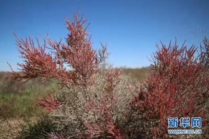 初秋时节,红衰翠减,但在八步沙林场中,大片的柠条、梭梭枝繁叶茂,绿意盎然。微风吹过,叶子沙沙作响,林场鲜花怒放。