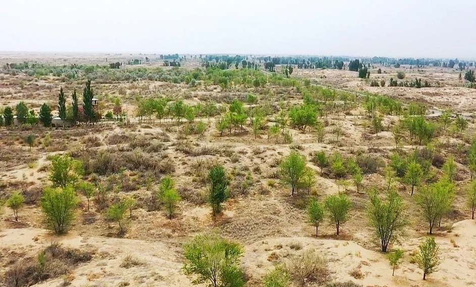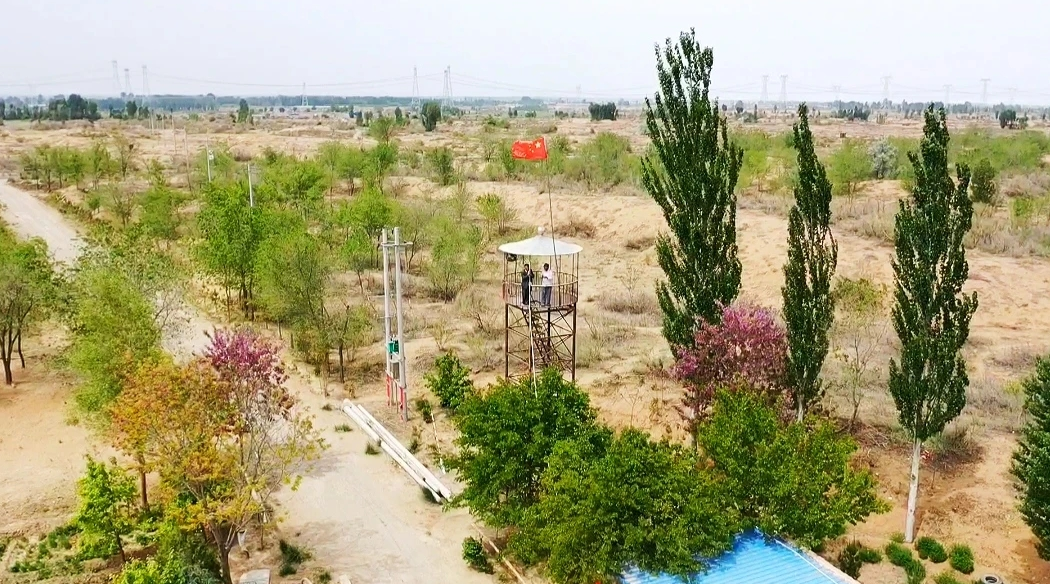 如今,站在治沙点13米高的瞭望塔上远望,方圆数千亩的绿洲尽收眼底。在王银吉的影响带动下,身边越来越多的人也投入到治沙种树中。仅在王银吉治沙的沙窝,就有4866亩社会各界人士栽种的公益林。