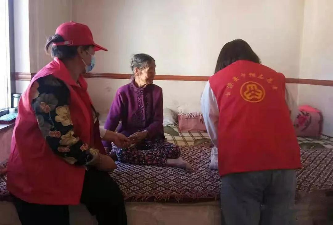 天祝县赛拉隆乡皮袋湾村独居的马奶奶,年过六十,丈夫患胃癌去世,子女都在外地。马奶奶在村里生活习惯了,不愿意离开,独自居住。巾帼志愿者们得知她的情况后,第一时间送去了面粉、大米、食用油等物品。马奶奶说:儿女不在身边,志愿者们就是我的亲人......。吐鲁沟村妇女仓加杨,因车祸受伤行动不便,巾帼志愿者们发挥娘家人的作用,轮流去她家里帮助打扫卫生,帮助她洗头洗脚,拆洗被褥等。仓加杨对巾帼志愿者们感激不已,她说,看到妇联的红马甲,就像看到了娘家人,格外亲切!