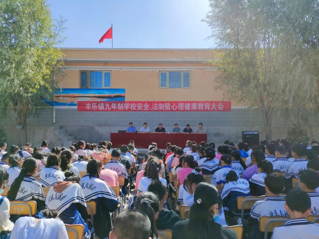 近日,凉州区丰乐镇九年制学校联合镇派出所、法庭召开法制安全暨心理健康教育大会,全校师生400多人参加了活动。