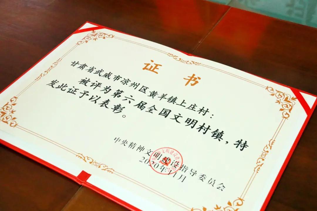 据了解,“全国文明村镇”是中央精神文明建设指导委员会授予的国家级荣誉称号,是综合评价一个村镇5个文明建设(物质文明、政治文明、精神文明、社会文明、生态文明)水平的最高荣誉,是一个村镇最有价值的无形资产和最具竞争力的金字招牌。自“全国文明村镇”创建工作开展以来,黄羊镇上庄村按照美丽乡村建设要求,以党建统揽全局,以“四抓两整治”为举措,抢抓各项政策机遇,通过抓班子、带队伍、兴产业、促脱贫、建农宅,成功探索出“上庄模式”,为创建全国文明村打下坚实基础,同时也将一个典型的贫困村打造成为远近闻名的美丽乡村建设示范村。在全体村民的共同努力下,“文明”已经成为上庄村广大群众内化于心、外化于行的最大内心认同。在去年11月公布的第六届全国文明村镇名单中,黄羊镇上庄村榜上有名,荣获“全国文明村镇”荣誉称号。