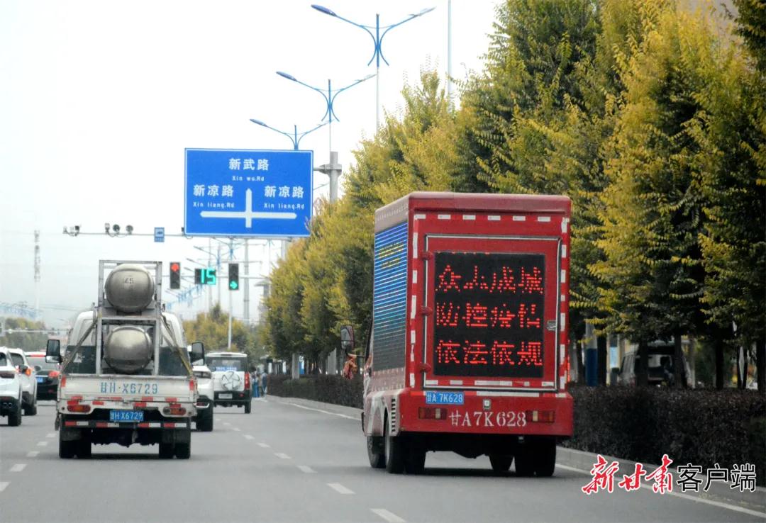 流动宣传车行驶在城区主干道上。新甘肃·甘肃日报记者 金奉乾摄