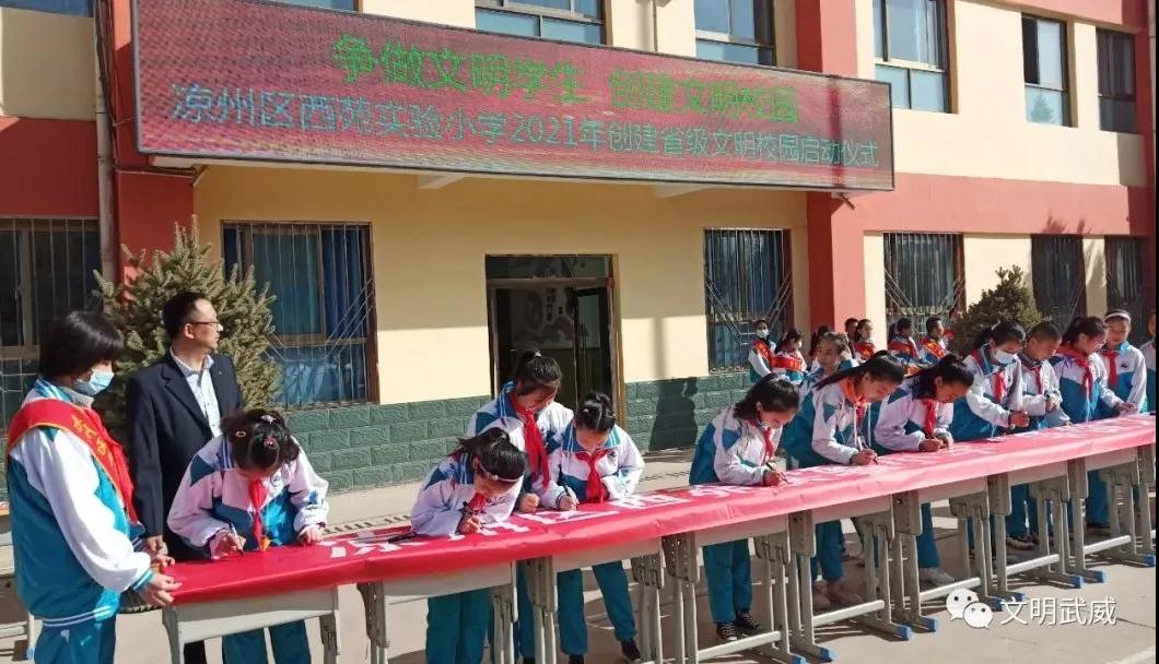 近年来,凉州区西苑实验小学以创建全国文明城市为契机,以“培育文明新风、创建文明校园”为目标,严格按照文明校园“六好”标准,扎实推进校园文化建设和未成年人思想道德建设,深入开展“扣好人生第一粒扣子”和“我的中国梦”主题教育活动,坚持活动育人,坚持寓教于乐,务求实效。