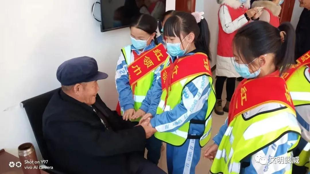 下午14点,同学们佩戴口罩、满怀热情,兴高采烈的出发,经过严格的体温检测后进入古浪县老年养护院的大门,见到老人们以后,孩子们主动上前搀扶,并以实际行动认真践行敬老爱老主题服务活动。活动中,孩子们和爷爷奶奶手拉着手拉起了家常。“奶奶,您多大了?”“爷爷,祝你幸福!”养护院的爷爷奶奶们看到同学们天真的笑脸、听到他们亲切的问候不时开心一笑,呈现出一派其乐融融的感人场面。