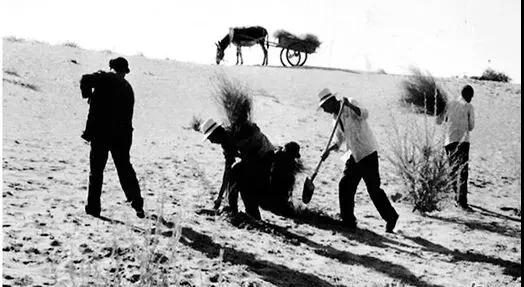 于是,一头毛驴、一辆架子车、一个大水桶和几把铁锨,他们开始了治沙造林……为了赶进度,全家老少齐上阵;为了省时间,索性卷起铺盖住进沙窝里;没有房子住,就在沙地上挖个壕沟,用柴草搭上个地窝铺住;没有炉子生火做饭,就用三块石头支口锅,开水泡馍当饭吃。大风一起,沙子刮到锅碗里,吃到嘴里把牙齿硌得生疼。