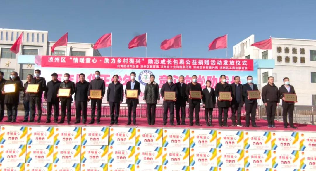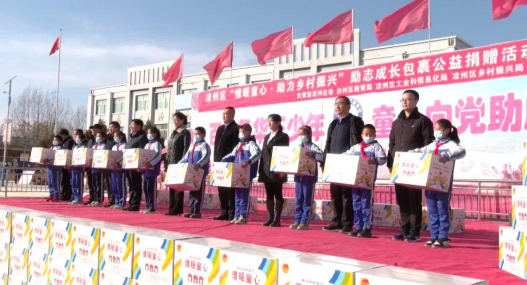 12月17日,共青团凉州区委、区教育局、区工信局、区乡村振兴局、区工商联联合在松树镇九年制学校组织开展“情暖童心·助力乡村振兴”励志成长包裹公益捐赠活动发放仪式。