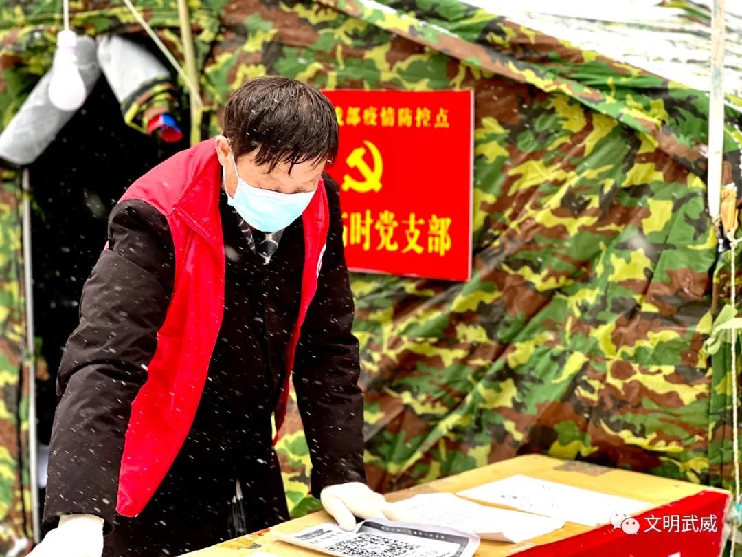 飞雪飘飘凛冬至,银装素裹竞妖娆。11月6日,武威迎来了第一场雪,城市街道上、小区内白雪皑皑,分外迷人。大雪考验着我们对疫情防控的信心和决心。看!那一抹抹志愿红依然奋战在疫线,他们用行动表达铮铮誓言,诠释共产党员的初心使命。