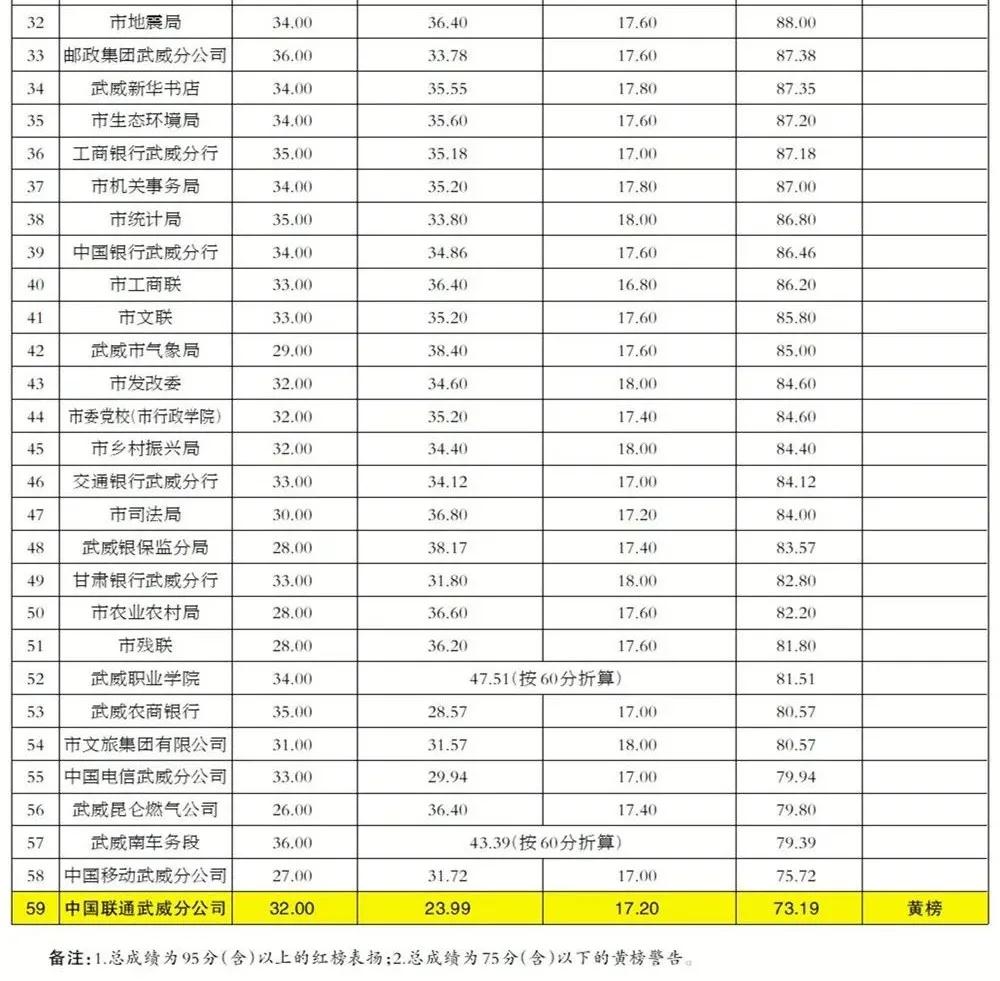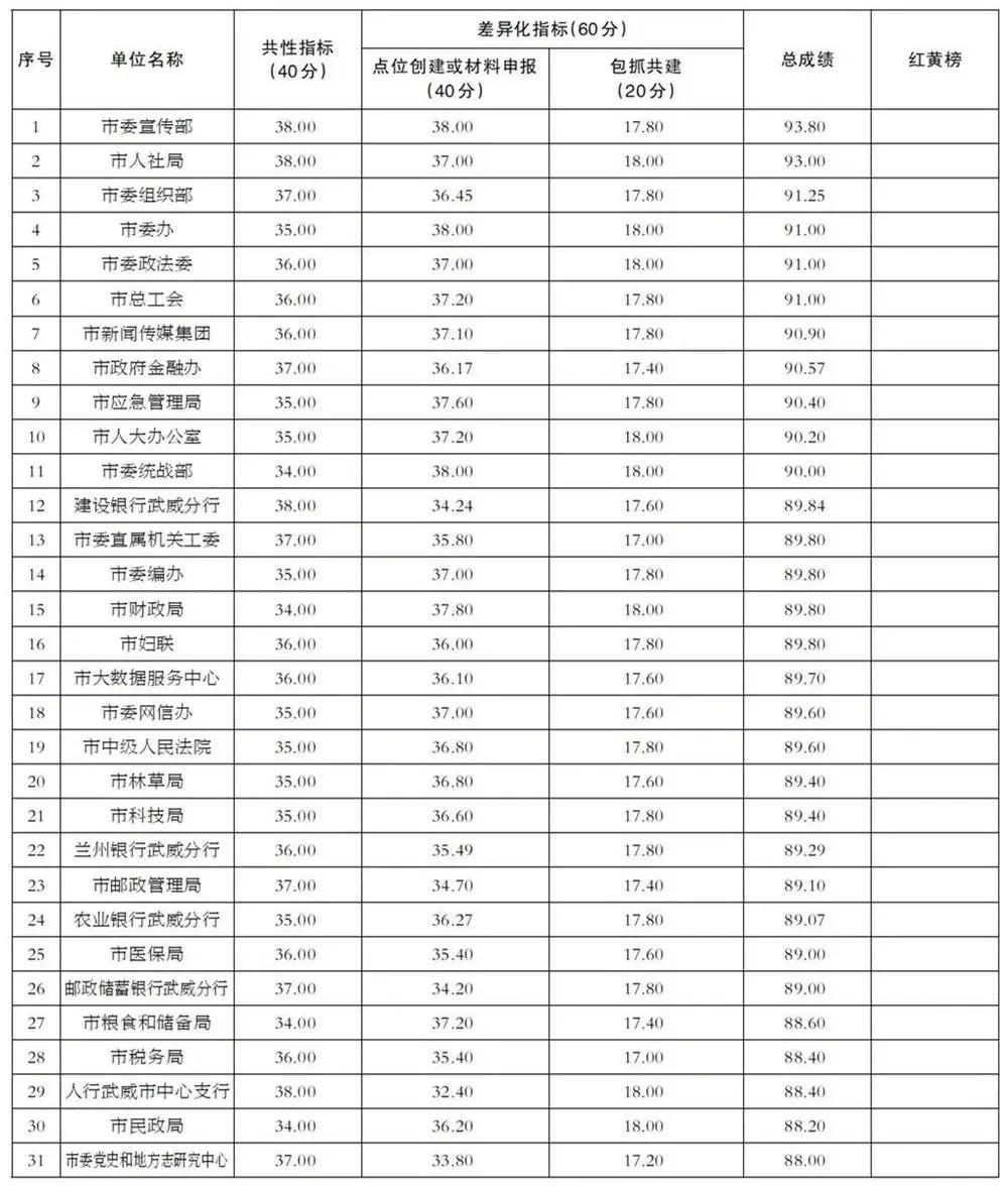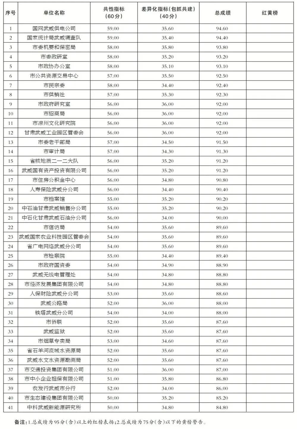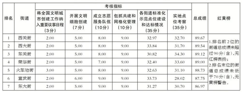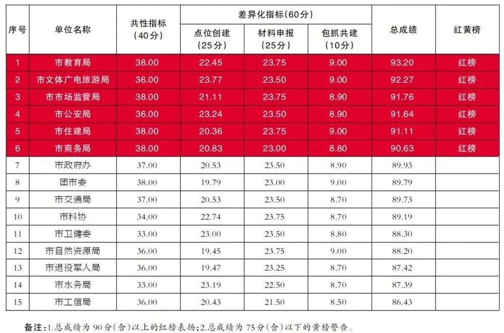 红榜表扬:一类单位总成绩90分(含)以上和二类、三类单位总成绩95分(含)以上。