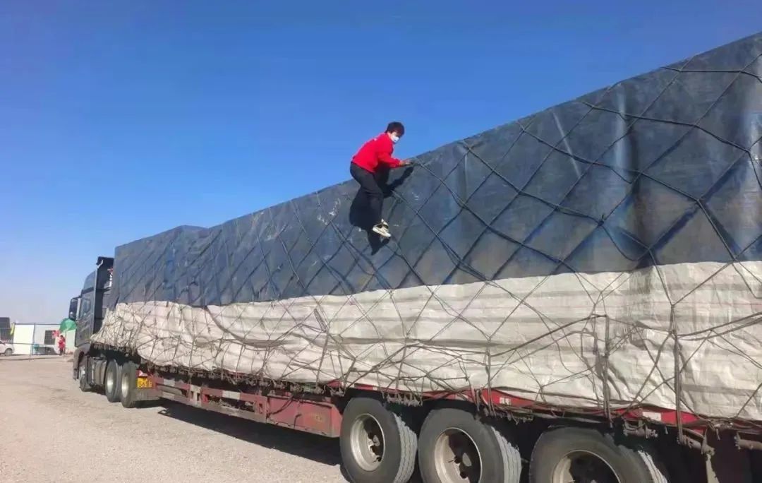 武威籍“卡嫂”陈桂梅跟随丈夫谢飞跑长途运输六年多,他们把家乡的“凉州蔬菜”转运到天津、河北、浙江一带,这次返程他们装运了一车到金昌的太阳能光伏板。图为陈桂梅正在检查货物。