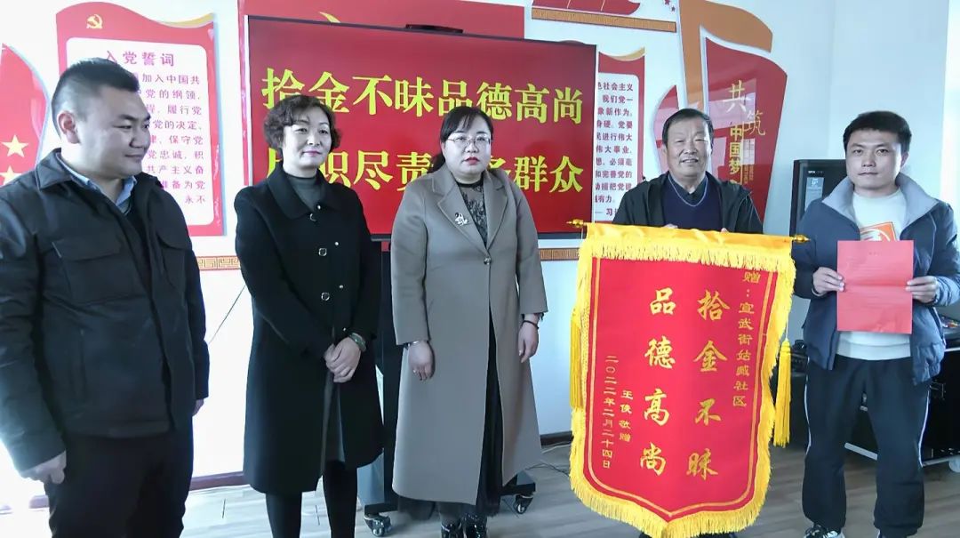 近日,市民王先生手持感谢信来到凉州区宣武街姑臧社区,为社区工作人员赵琴送来一面“拾金不昧、品德高尚”的锦旗,感谢她拾金不昧的善举。