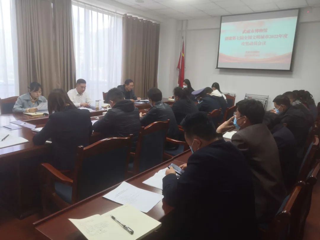 3月14日上午,武威市博物馆召开创建第七届全国文明城市2022年攻坚动员大会。会上传达学习了局党组创建第七届全国文明城市2022年攻坚动员大会会议精神,宣读了《武威市博物馆创建第七届全国文明城市2022年工作实施方案》,分析研判了创城工作面临的形势和短板弱项,安排部署了2022年创城重点工作。全体干部职工和参服单位负责人参加了会议。