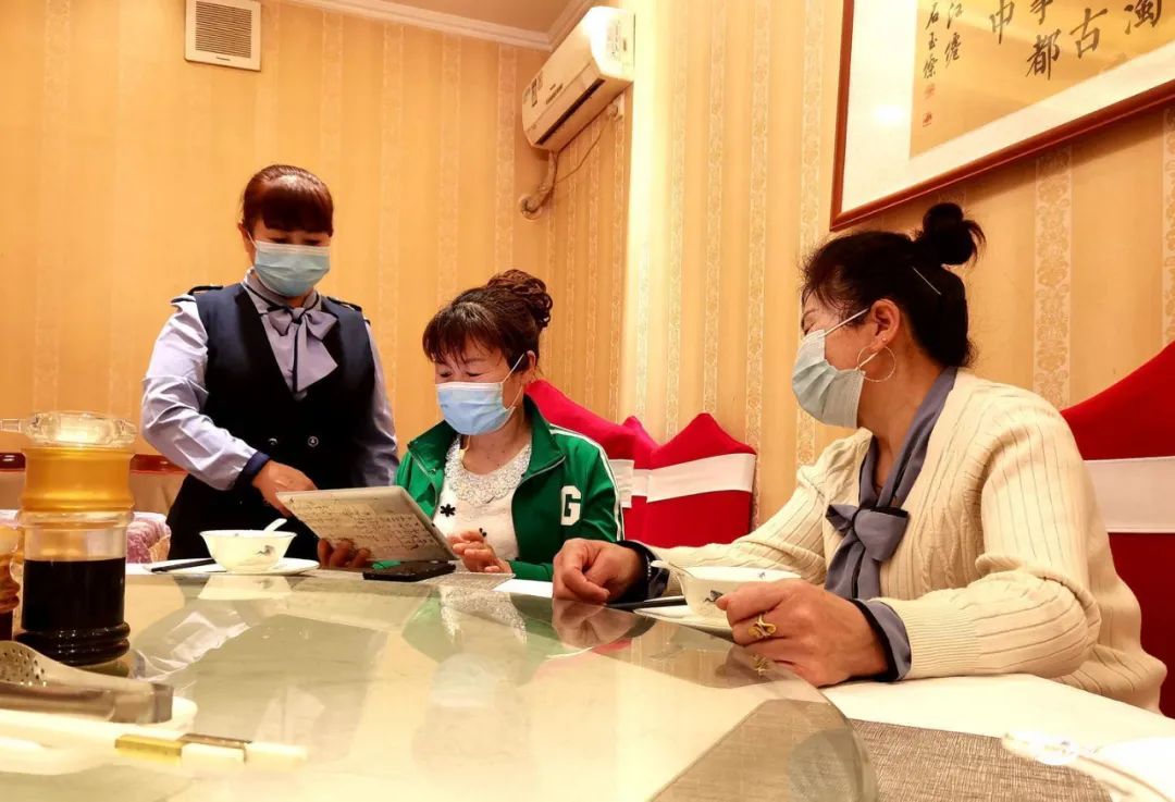“顾客们,您们点的菜差不多了,吃好就可以了,不要点多浪费了。”正值饭点,王建华带领她的几位朋友过来吃饭,餐厅大堂经理甘玉琴赶忙将顾客迎进包厢,指导消费者合理点餐。“今天我们姐妹几个约出来吃个饭,人也不多,我们就少点几个菜,实在吃不完就打包带走。”听着工作人员的点餐建议,王建华也表示将把“光盘行动”落实到底。