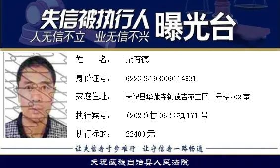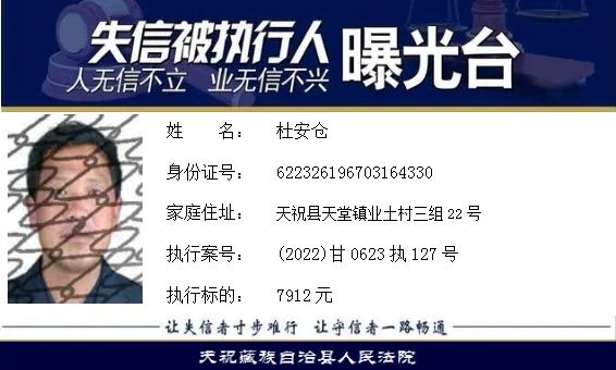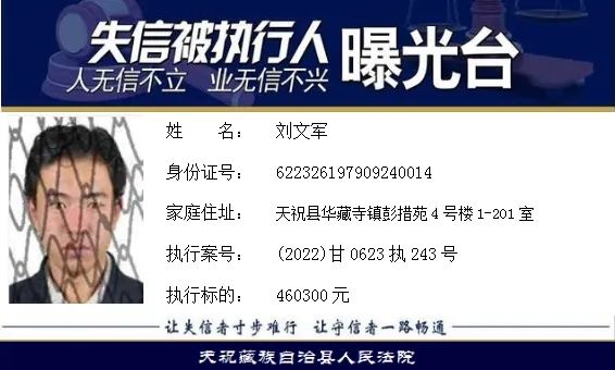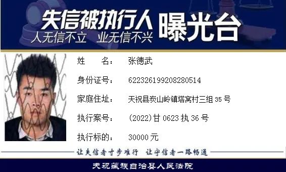 天祝藏族自治县人民法院失信曝光台2022年第五批)